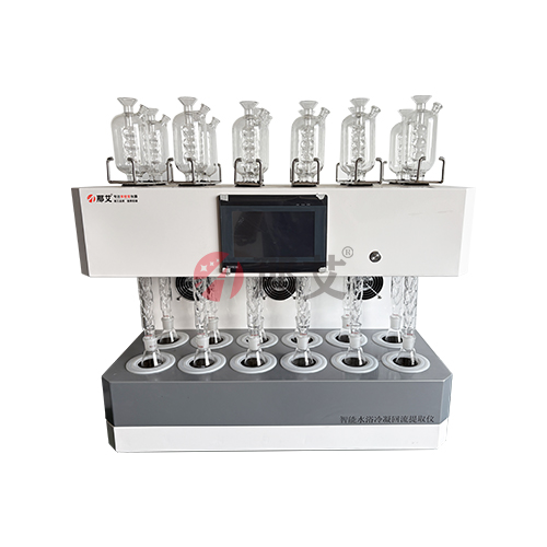 實驗室為了加快反應(yīng)速度很慢或難以進行的化學(xué)反應(yīng),常常采用回流與冷凝裝置,保證反應(yīng)進行完全,并防止反應(yīng)物、產(chǎn)物或溶劑揮發(fā)逸出體系。那艾智能水浴冷凝回流提取儀(專利編號:CN220496410U)采用智能恒溫水浴替代傳統(tǒng)水浴鍋,標配12個加熱單元,滿足大樣品量的需求;內(nèi)置四個測溫點和耐高溫循環(huán)水泵來保證水浴溫控均勻;一鍵啟動,自動雙區(qū)控溫,且缺水自動補水,可自動排水,避免長時間菌類滋生。適用于食品及食品包裝物部分項目的檢測前處理,中藥科研單位、加工企業(yè)、生產(chǎn)企業(yè)等樣品浸出物、含量測定、理化鑒別等實驗。